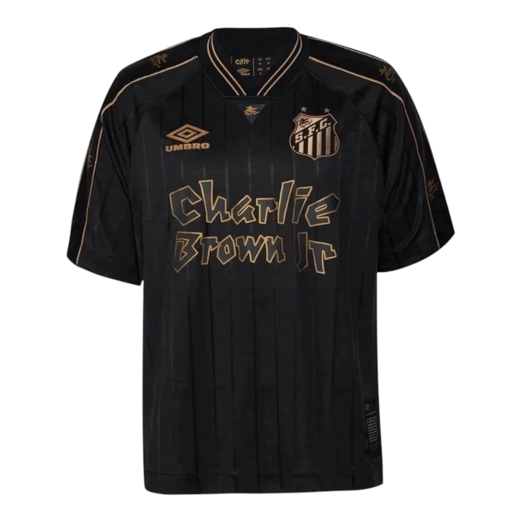 Camisa Santos Edição especial Charlie Brown Jr. 24/25 – Torcedor Umbro Masculina – Preta com detalhes em dourado