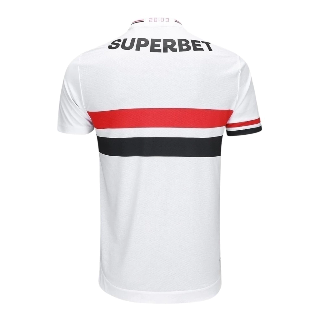 Camisa São Paulo I 25/26 – Torcedor New Balance Masculina – Branca com detalhes em vermelho e preto