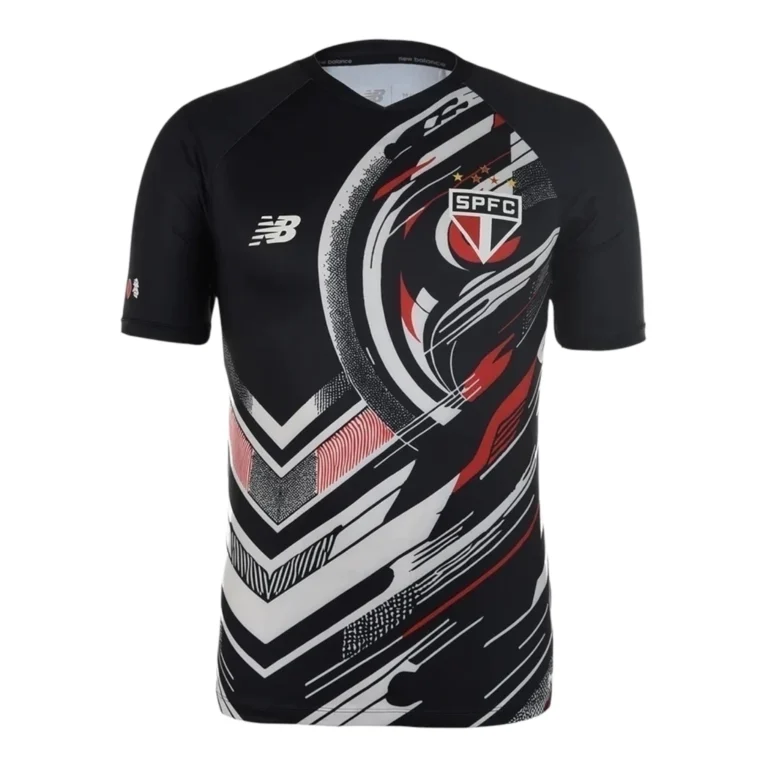 Camisa São Paulo Pré-jogo 25/26 – Torcedor New Balance Masculina – Preta com detalhes em branco e vermelho